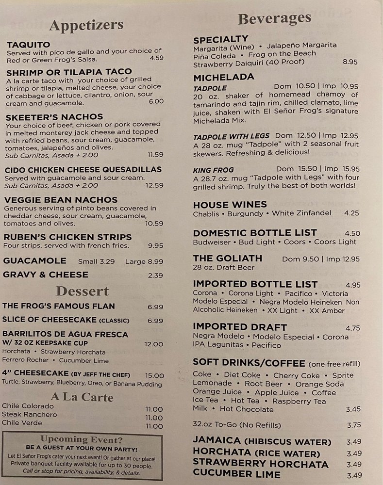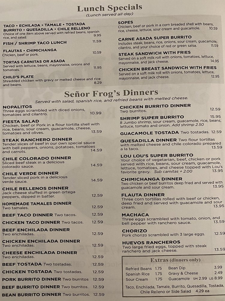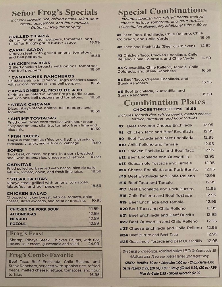 Located in Stockton, CA, El Señor Frog's is a hidden gem offering Mexican cuisine with a quirky atmosphere and friendly staff. Customers rave about the exceptional customer service and delicious food, making it a go-to spot for many. The menu boasts a variety of options, from shredded beef tacos to enchilada combos, tamales, and rellanos. Favorites include the #1 and #3 combo dishes, as well as the camarones al mojo de ajo. Portions are generous, prices are fair, and the family-owned establishment treats guests like family. With vegan and limited vegetarian options available, El Señor Frog's is a must-visit for authentic Mexican flavors and a welcoming dining experience.